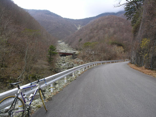 | お店がお休みでこの時期にしては暖かい日。シーズン最後に山岳ツーリングに行ってみたくなった。見晴らしの良いコースで、時間も遅いのでショートコースで温泉があればいいなあと考えると、天川~行者還~上北~洞川という大峰山を一周するようなコースを思いついた。スタート地点の標高も高く、1100m以上の峠を2つ越えるが、あまりきつくないだろうとタカをくくり、きつかったら途中と引き返そうと甘い気持ちでスタートした。ま、今日はびり~(のんびりの略。昔友達とよくのんびり行く日を「今日はびり~の日で行こう」といっていた)で行こうというわけである。