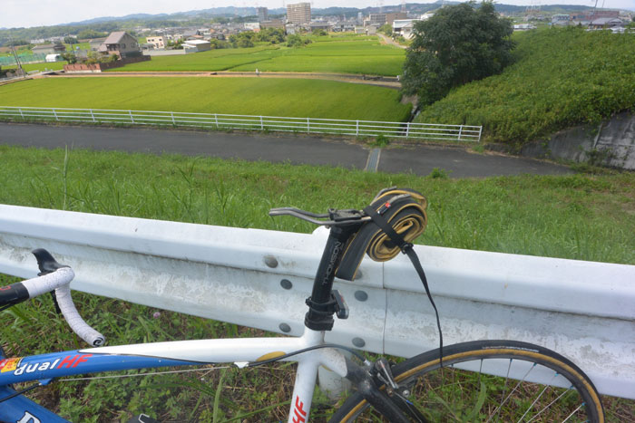 そこからは最短ルートの帰り道を走り、最後の木津川からサイクリングロードに入ろうかと、左折した時にちょっとした段差でお尻を上げたとき、いきなり「パコーン」と後ろで音が鳴りました。