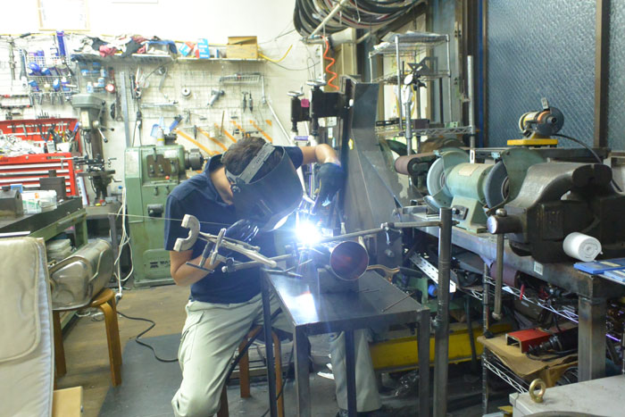 今日はお客さんがお店で車の部品を制作していました。 ステンレスパイプを切って溶接しています。 お店にきた別のお客さんはびっくりしていました。 最近どんどん自転車屋から離れているような気がします。 金属加工って面白いですね。昔学校の授業で図画工作がとても好きでした。授業時間の50分があっという間に過ぎていった思い出があります。 僕もなにか夢中で加工しているとあっという間に時間が過ぎてしまいます。 お店というよりも工房、というよりも遊び場という感じです。 ああ、なんかいろいろ作りたくなっちゃいます。