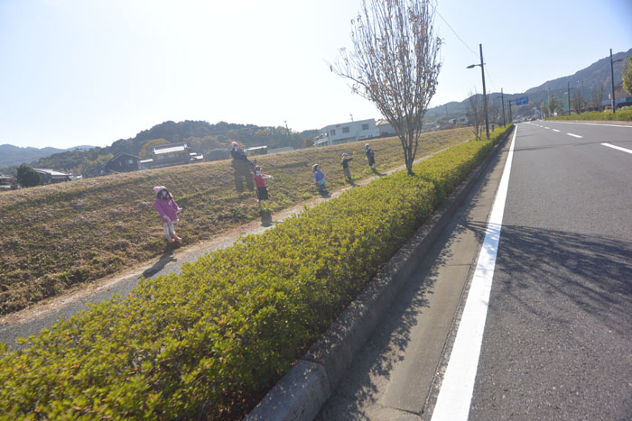 帰り道の途中、なんか人形?かかし?まねきん?がいっぱい並んでいるところがありました。