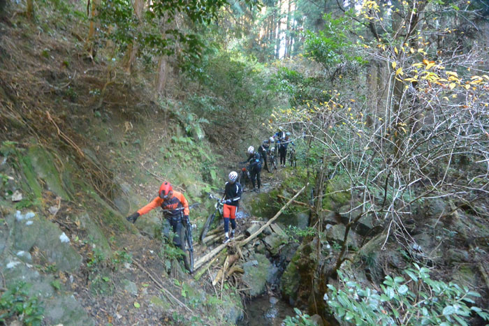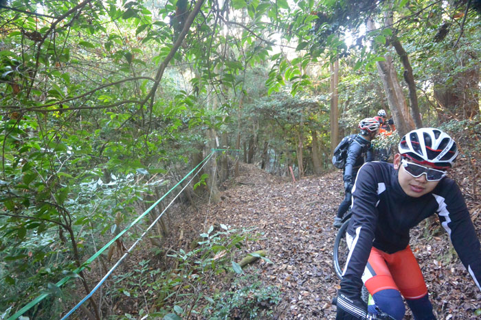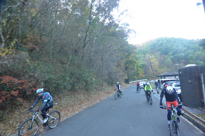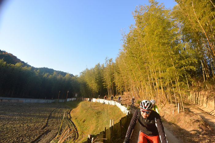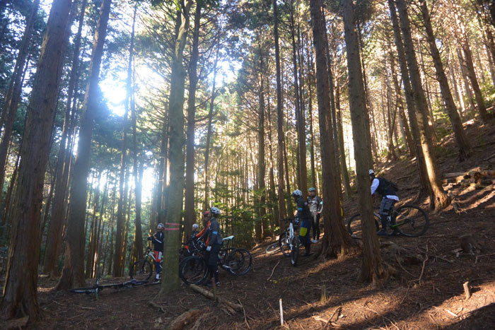 シングルトラックの最後はちょっと難しい下りがあるのですが、久々で路面があれていたのもあり、体もなれていないこともあり、何人かしっかり転びました。