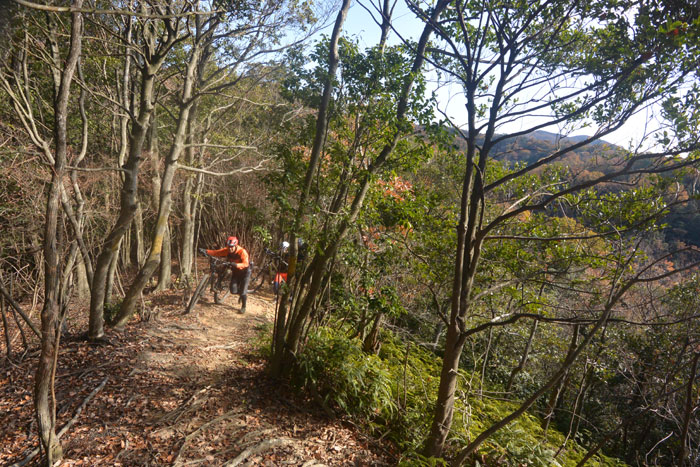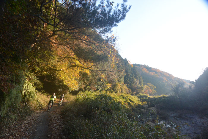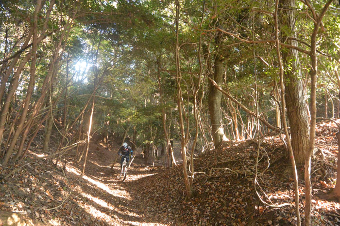 シングルトラックはいい具合に落ち葉が積もっていて、サクサク走れました。やっぱ楽しい。最高。