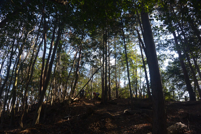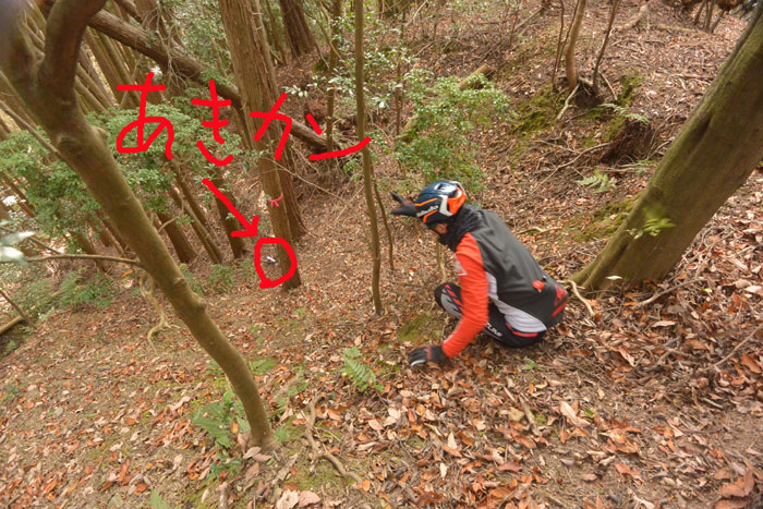 いつも通りジープロードを上って一つ目のシングルトラックを走りワイワイ楽しんでいました。するとコースから外れた崖の下に空き缶が落ちていました。誰やこんなところに捨てたやつは!しゃあないなあ・・・すると最近参加して攻めまくっている高校生が「僕とってきますよ」と言ってひょいひょい身軽に崖を降りていきました。さすが。