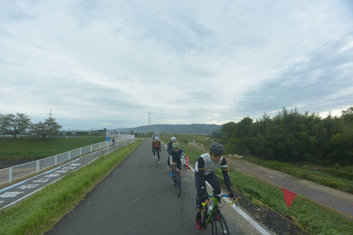 で、走り始めたのですが、なぜかいつも使っているガーミンのメーターが調子が悪く、スイッチを入れてもうまく起動しませんでした。なんど再起動してもうまくいかないのでもう一つのパイオニア製のメーターを目安に走ることにしました。