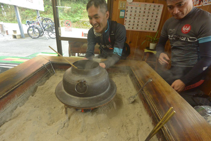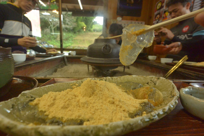 あったかいお茶とわらび餅、おはぎをいただき、また出発しました。