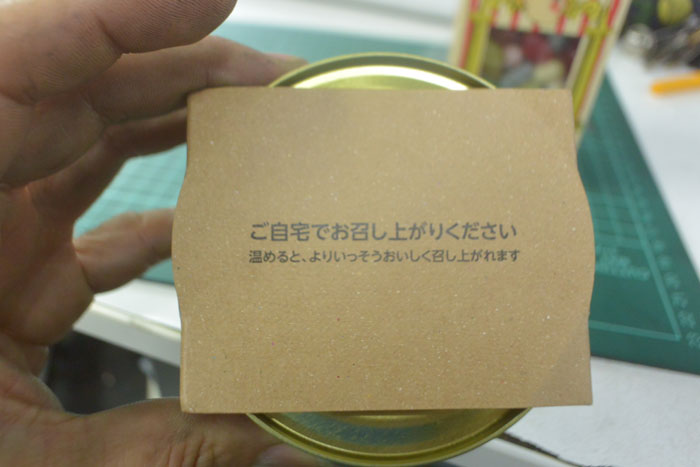 上面には「ご自宅でお召し上がりください」って書いてある。これをUSJで食うやつがいるのか。「温めると・・・」とありますが、これ大事だからおぼえておいてね。缶詰は缶をそのまま温めちゃだめだからね。必ず別の容器に移してから温めてね。