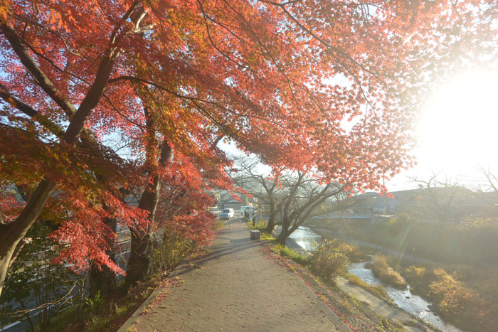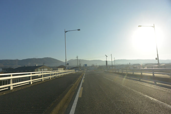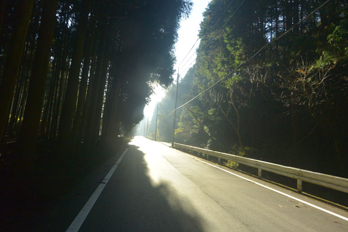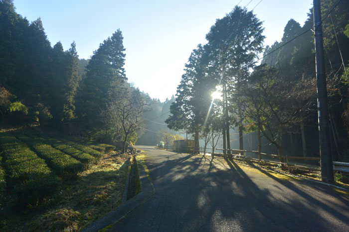 バイクの感触を確かめながら坦々とペダルを回しながらお茶屋を目指しました。東に向かって走るので朝陽がまぶしいです。