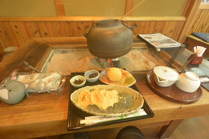 甘味処に着いたらお茶パックだけを買おうと思ったのですが、中はいろりで暖かく、そして空腹の状態、お茶パックだけを買って出られるわけはなく・・・