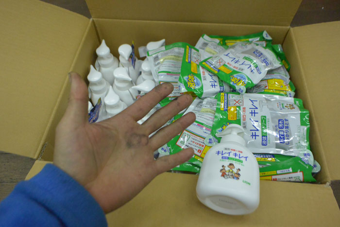 今日、お客さんが大量のキレイキレイを持ってきてくれました。