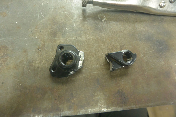 実は昨日の朝走りのとき、メンバーのバイクのリアエンドがバキっと折れてしまいました。