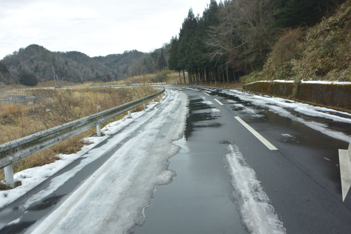 これだけ暖かいから路面は何ともないだろうと思っていたのですが、ところどころに雪が出てきました。