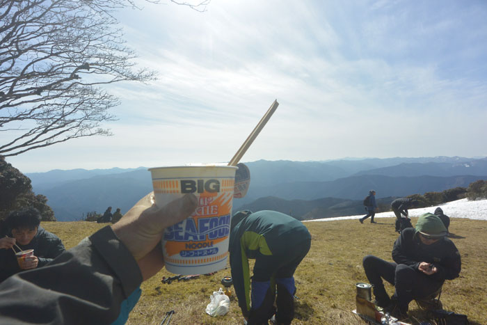 そのあとは八丁平という開けたところでカップラーメンタイム。ここではお決まりの「インスタ(ントラーメン)映え」