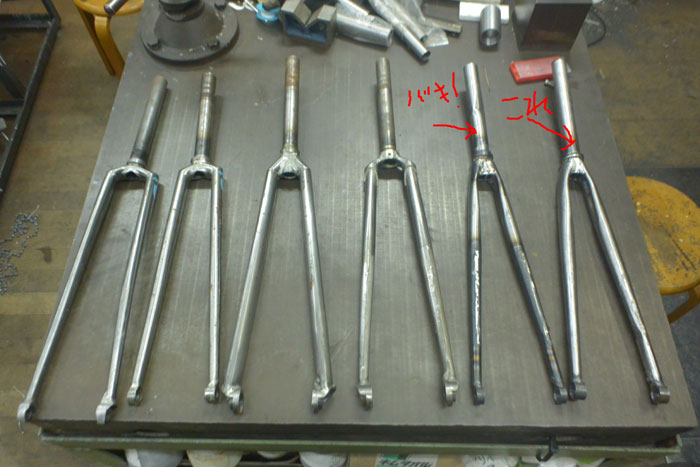 で、軽くて強いフォークの構想がずっと頭の中にあって試作を作りたかったんですよ。そしてちょうど前の日曜日雨で朝走りがなかったので早速作り始めました。それから二日かけてなんとかほぼ完成。