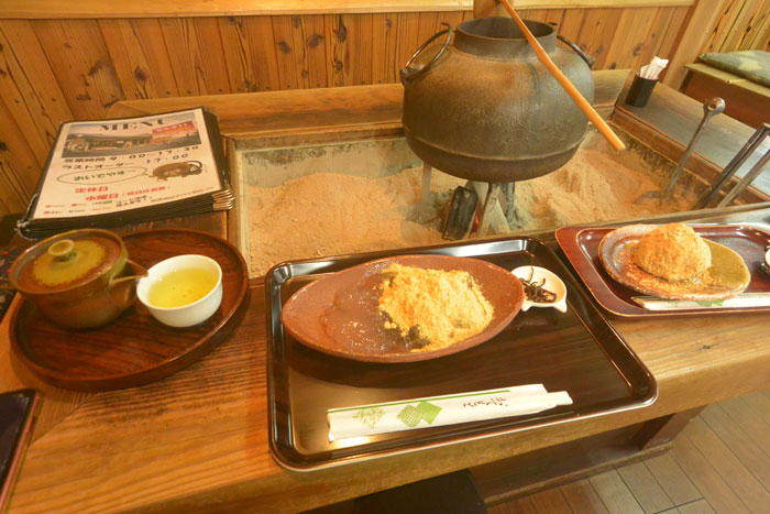そしていつもの甘味処に到着。お店で飲むお茶っ葉を購入がてらわらび餅(とおはぎ)を頂きます。