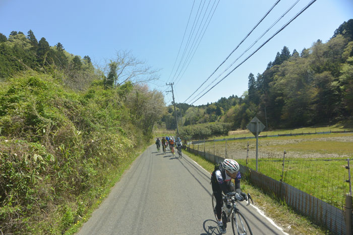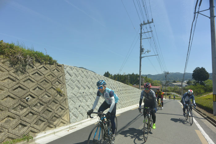 いつもの峠を越えたところで先行のメンバーが待っていてくれていると思いきや、だれもいません。