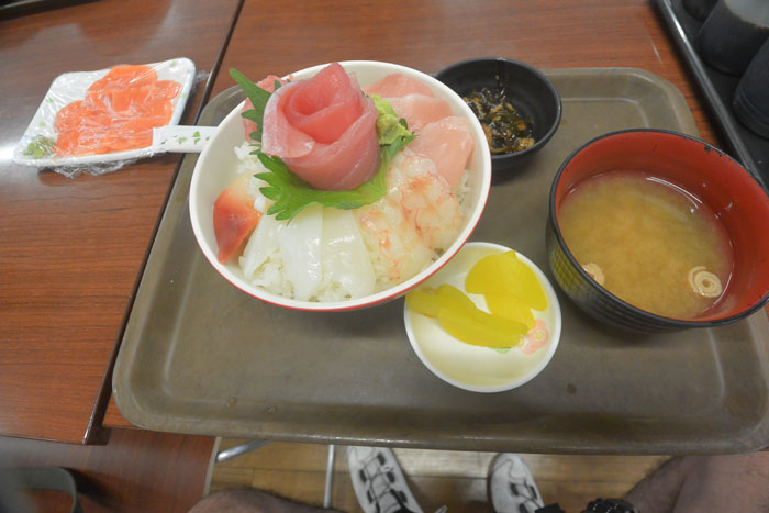 ようやくマグロレストランへ。いろいろメニューがあって迷いますが、今回は海鮮丼。これで1000円。安い。