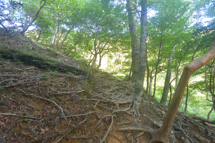 ここも結構道が荒れていて、それから倒木をよけるためか道が分かれていて顔を上げて先を見据えて登らないとルートを間違えそうになります。結局合流するんだけど。