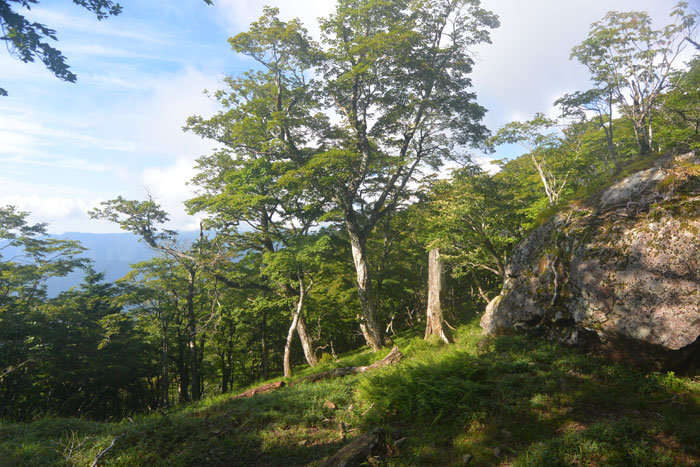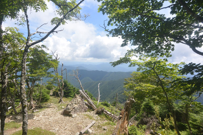 滝のような汗をかきながらなんとか稜線に到着。ここからは気持ちの良い森の稜線をずんずん進みます。