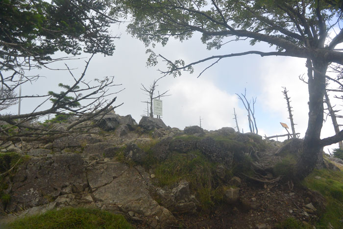 弥山頂上近くになると気の階段ができていてびっくり。しかしそれももう荒れかけていてちょっと斜めになっていました。