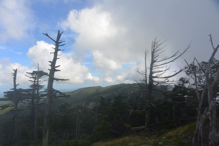それから八経ヶ岳に向かいます。いちど鞍部に下りて登ります。