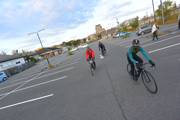 お店に行き、走る準備をして自転車で集合場所に向かいます。