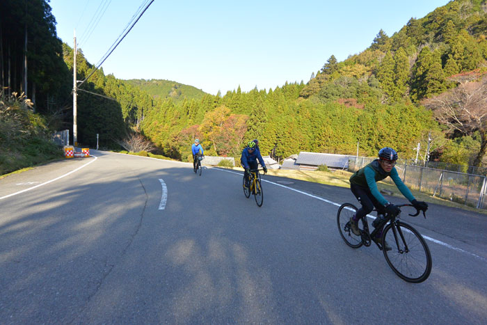 木津川沿いを走り、和束からいつもの峠に向かって走るのですが、なんだか調子がいいです。冷えた体が温まってきたからか。
