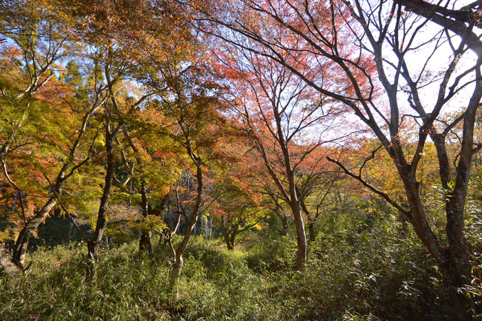 紅葉ポイントに着くと、紅葉はあたりでありはずれでした。ある木はもう葉っぱが散ってしまっていて、その隣の木はまだ葉っぱが青いままでした。