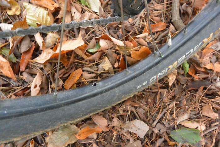 前回は枝を巻き込んでバルブを飛ばしてしまいましたが今回はリムを割ってしまいました。あああ。