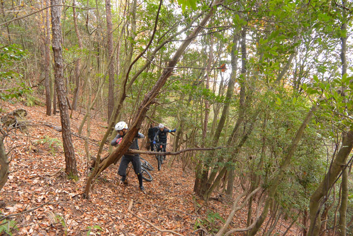そこでメンバーが元気よく飛び込んだのですが、ギャップの先の木に当たって転びかけました。