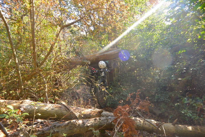 このルートも今年台風があまり来なかったので大して荒れてはいなかったのですが、やはり枯れ枝はたくさん落ちていてバキバキ踏んだり巻き込みそうになったりしながら進みました。