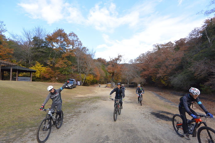 最後は公園に抜けるのですが、キャンプしている人や家族連れが結構いるのですが、森の中からMTBの集団が現れるのでいつも驚かれます。