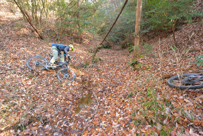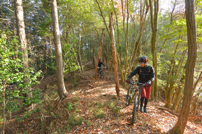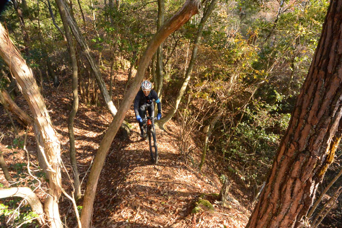 整備済みの一つ目の下りをサクサク一気に駆け抜け、二つ目のシングルトラックに入りました。