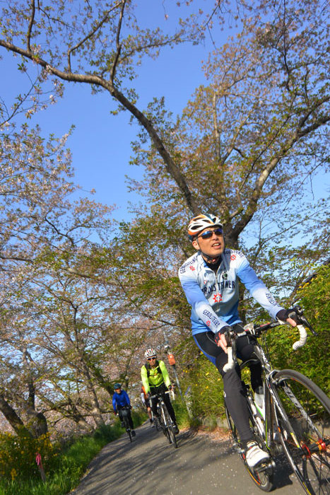 峠の下りで桜とみんなの走る姿ときれいな景色をとれる写真スポットがあるのですが、桜の木が大きくなってきてみんなの姿が取れなくなってしまいました。まあ、桜が異例だからいいか。