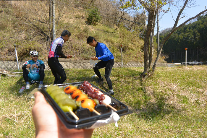 ここで僕が買ってきたお団子を出します。ちょうど後二人がそれぞれみたらし団子、あんこのお団子を買っていたのでそれぞれ交換しました。
