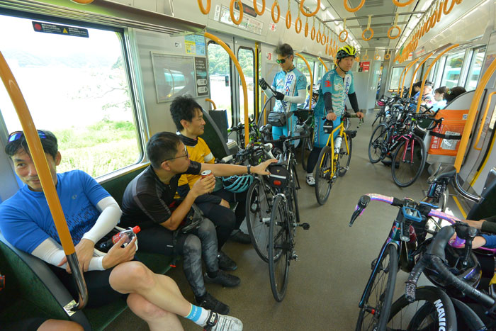 すでに乗っているサイクリストの皆さんも場所を開けてくれてすんなり乗り込むことができました。