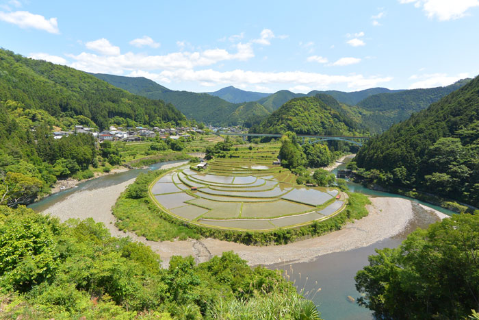 いつもバイパスで見ずにパスしていた「あらぎ島」という川のカーブの内側にある棚田を見に立ち寄っていきました。