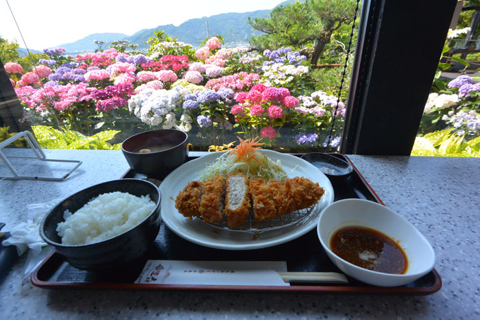 ここはすごい数の紫陽花が植わっていてすごくきれいでした。そしてここは幻の清水豚というのを扱っているらしく、それを注文しました。