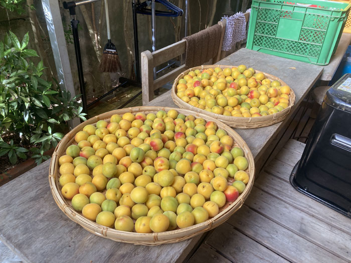 去年はめちゃくちゃいっぱい梅の実が採れたのですが、今年はその半分弱でした。