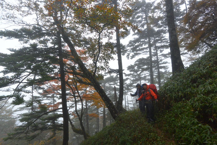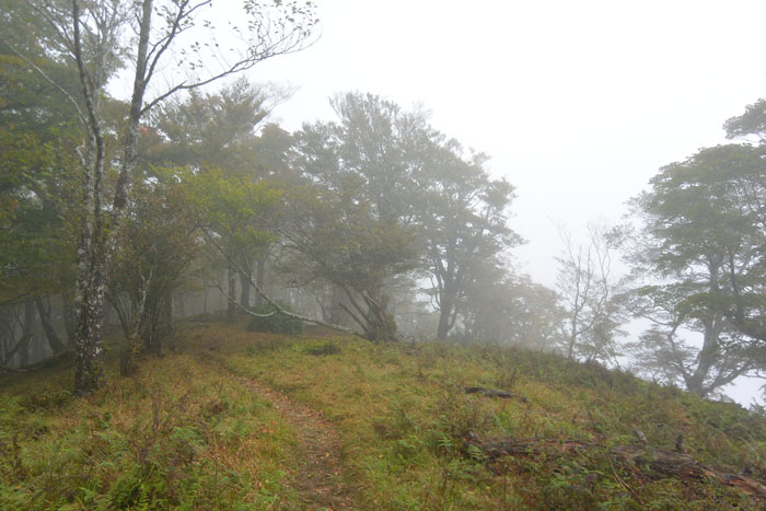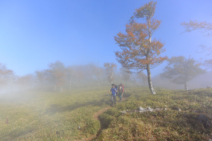 しかも稜線は雲の中であたりは真っ白。景色もほとんど見えません。
