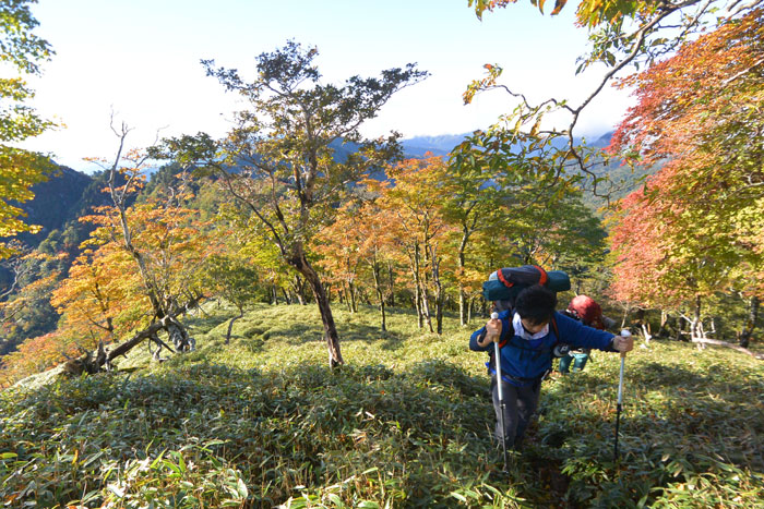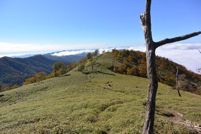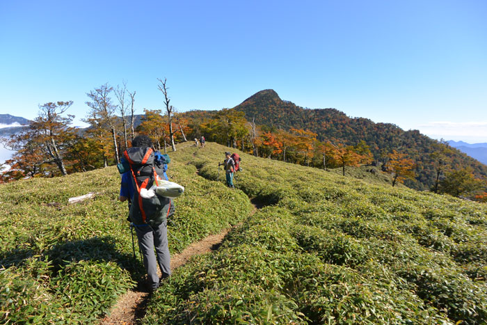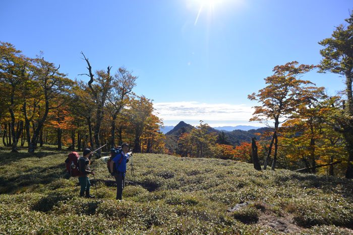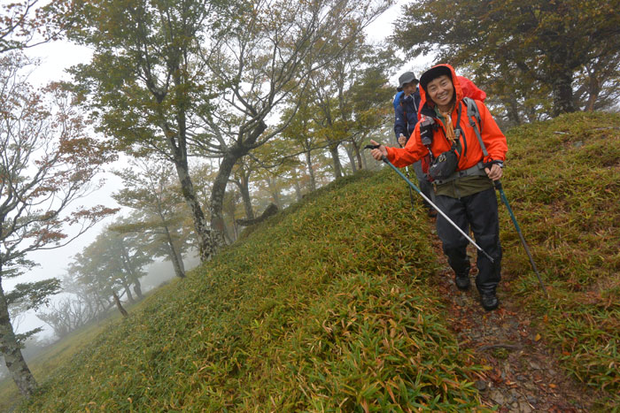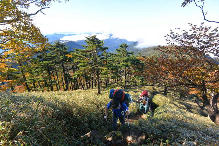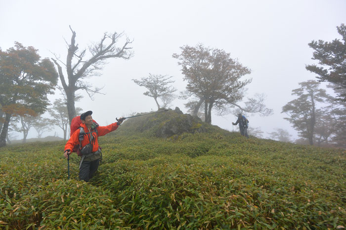気温は低いのですが額に汗を流しながら笹をかき分けて登りました。