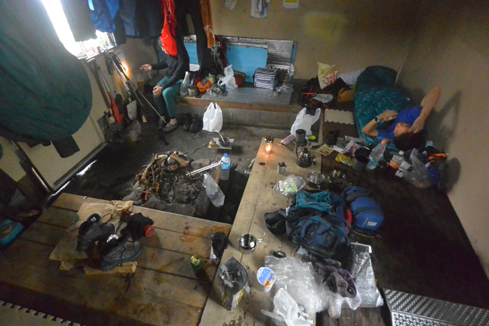 お昼過ぎに到着し、天気も荒れ模様なので小屋の中でうだうだ過ごすことにしました。