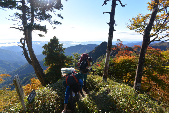 途中たくさんの登山者とすれ違ったのですが皆さんは日帰りなのでデイパックなんですが、キャンプ道具を背負った我々をみて「縦走」ですか?とよく聞かれるのが少し恥ずかしかったです。テントすらつかっていませんから。