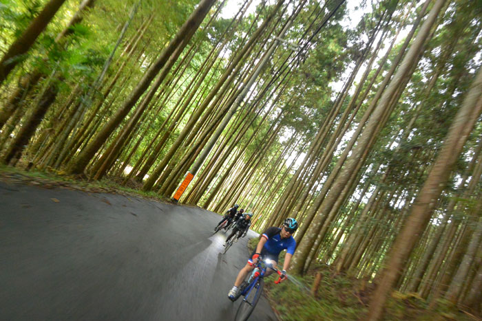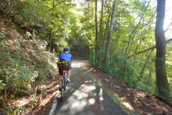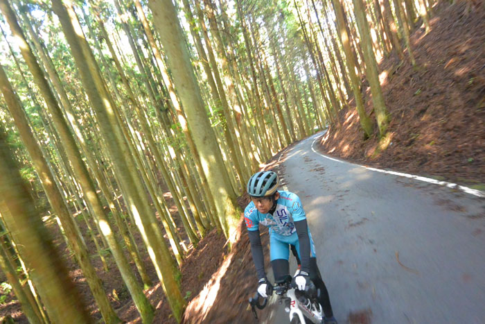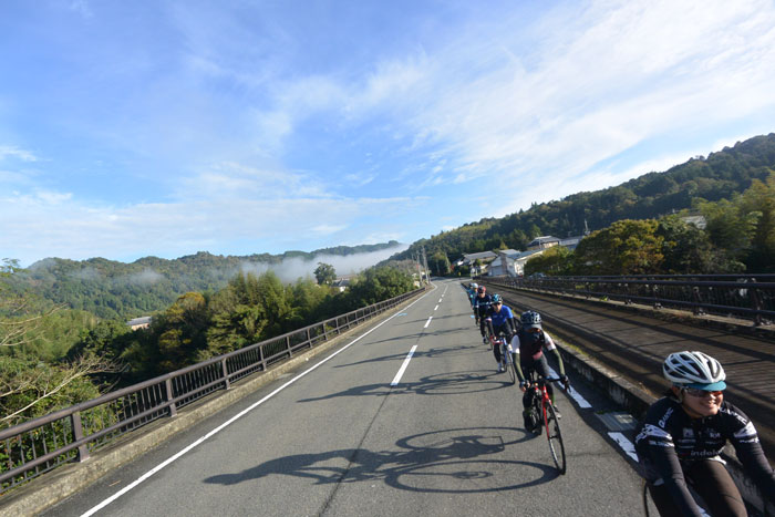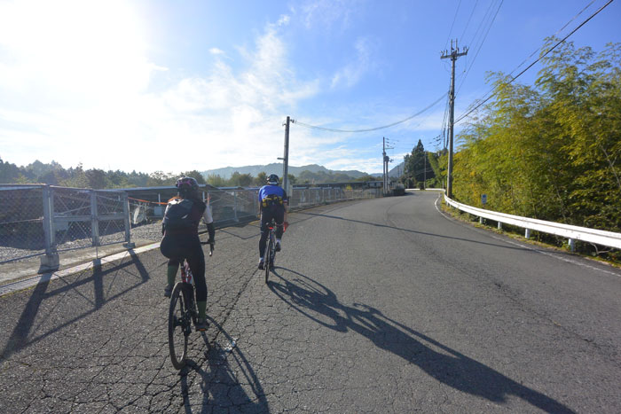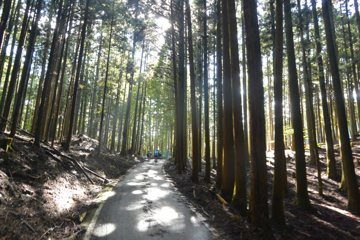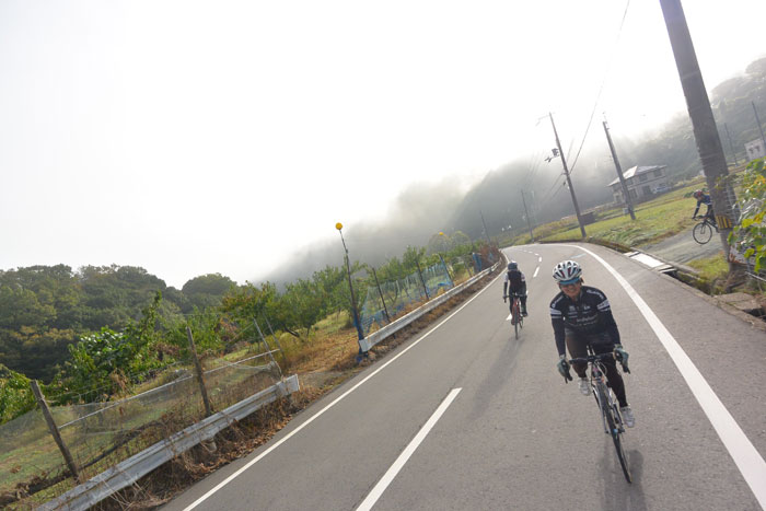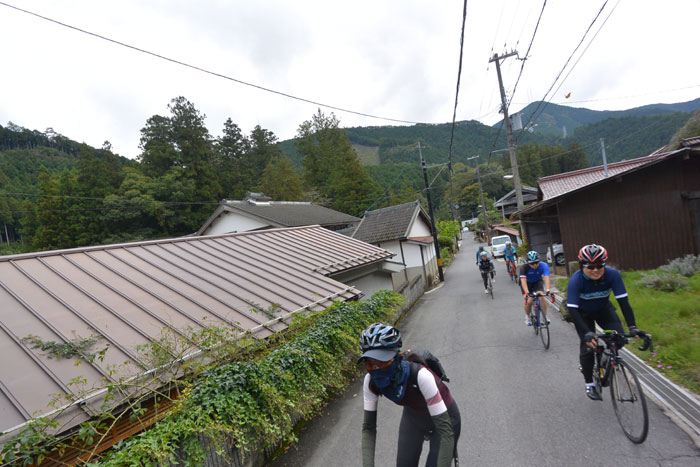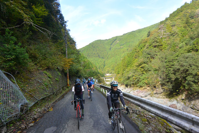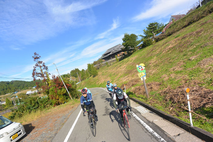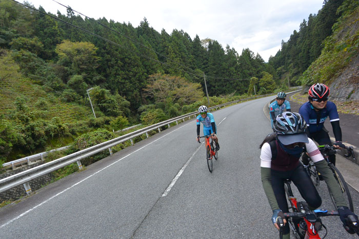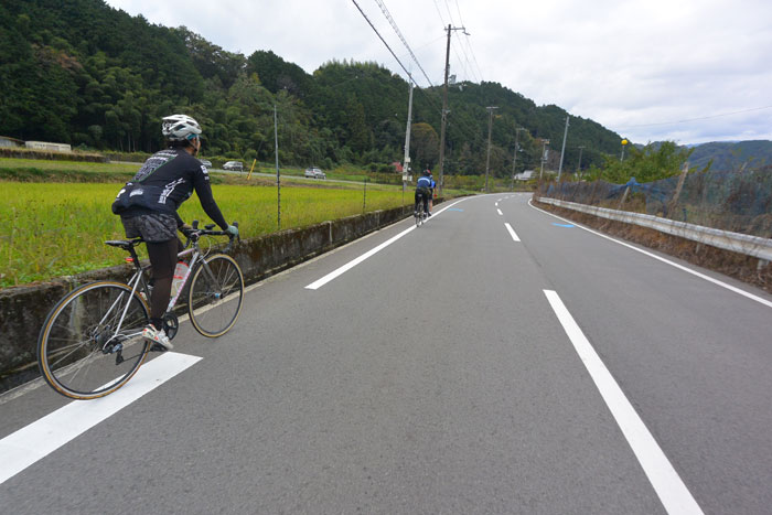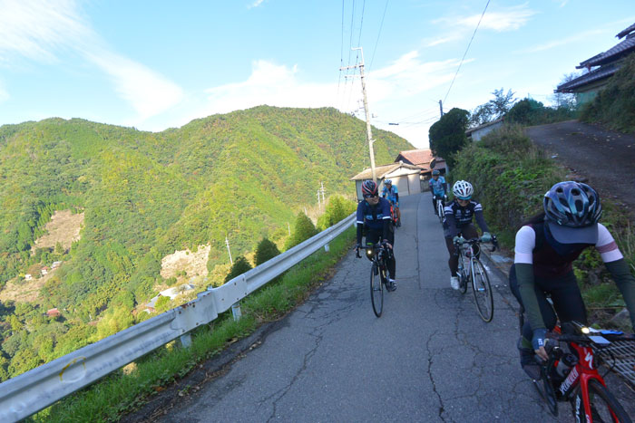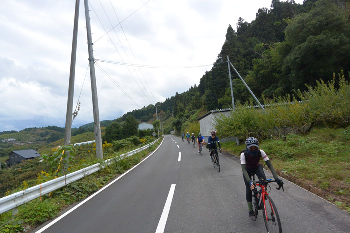 しばらく走ると富貴という集落に向かってのぼりが始まります。この道は長いですが勾配が緩いのでみんなで話しながら登ります。