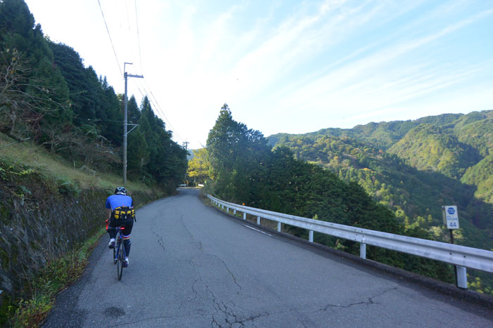 富貴を越えるとブラインドコーナーの連続する緩い峠道に入ります。