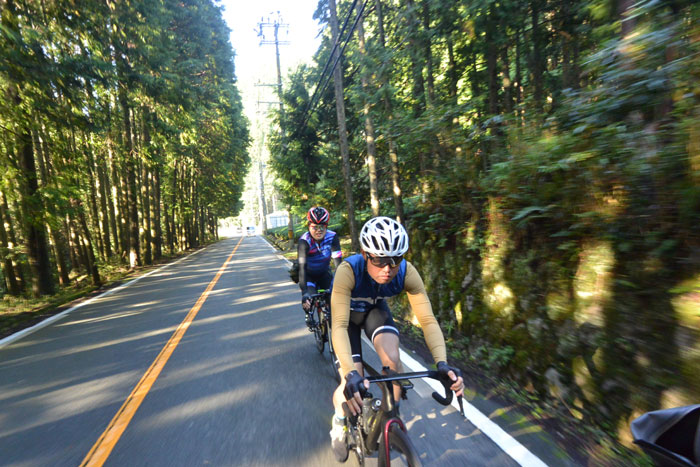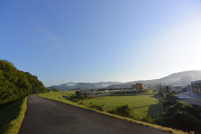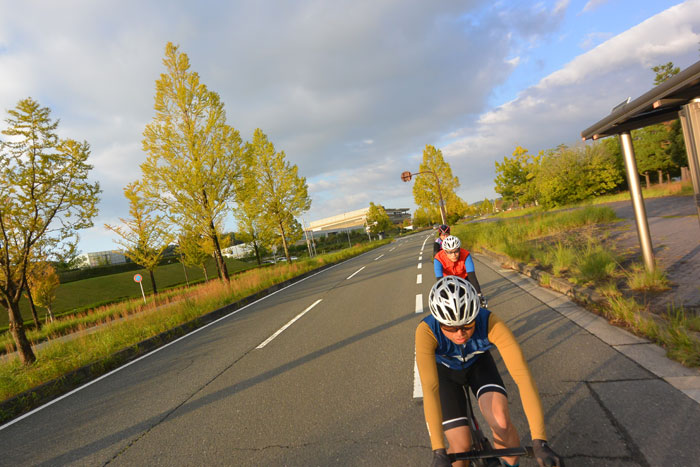 お店から集合場所までは東に向いて走るのですが、朝日の太陽の低さに日の出が遅くなったことを感じさせられます。