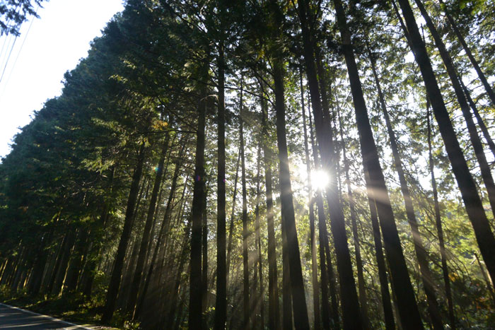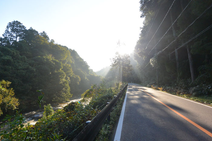 木津川から信楽方面の道に入ると、昨日の雨と朝快晴だった影響で朝霧が発生し、それに朝日が当たって素晴らしい景色になっていました。