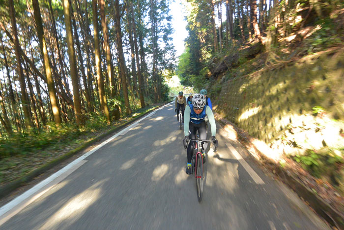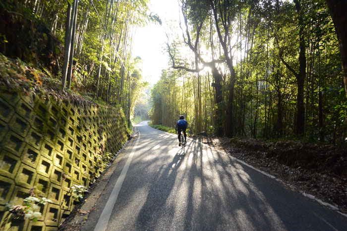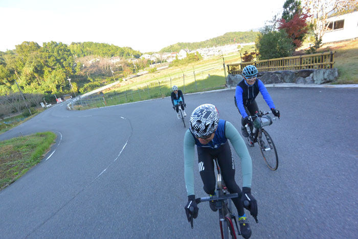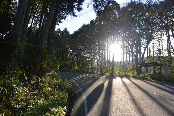上り坂で火照ったほほに今のひんやりした空気はほんとに気持ちが良いです。その気持ちよさに朝日が当たってなんか幸せな気持ちになります。