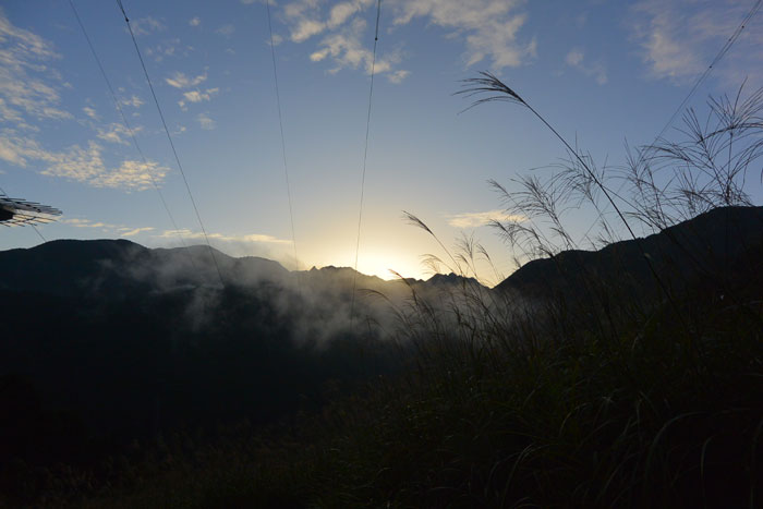 登り始めて急登で稜線に出ます。もうすぐ日の出。