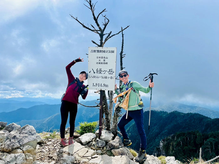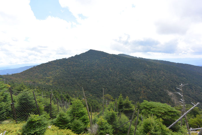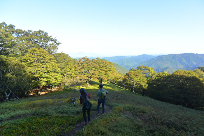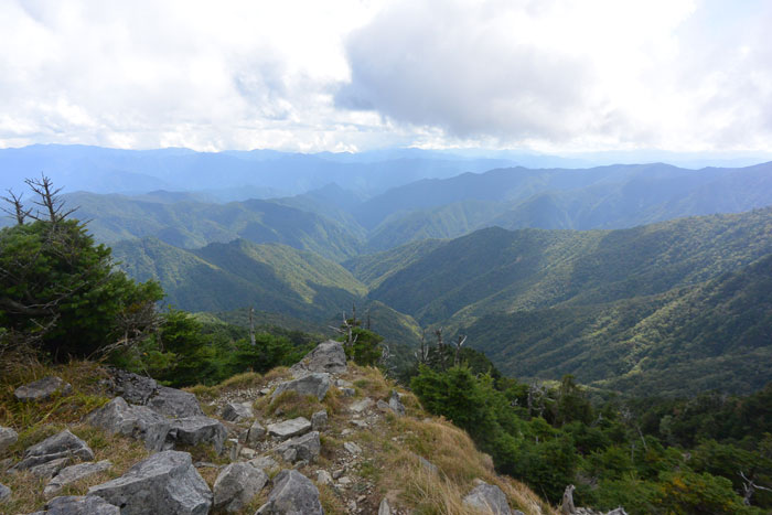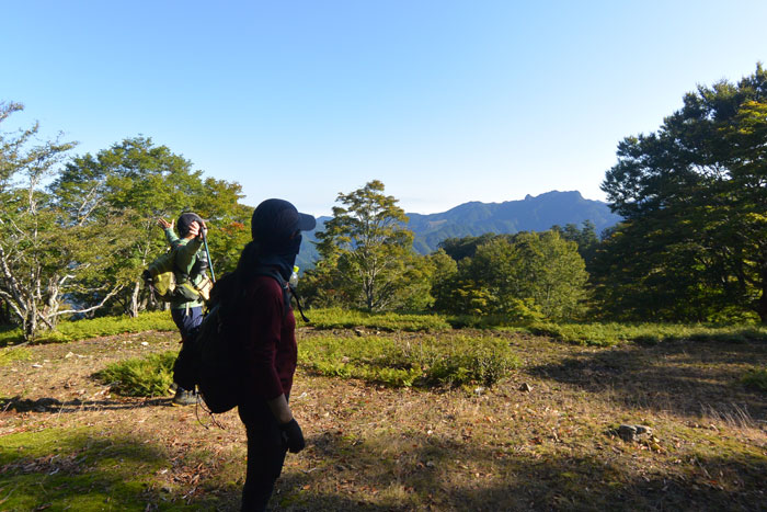 向こうになだらかな八経ヶ岳の山容が見えます。頂上は独立峰って感じなのにはたから見るとなだらか。