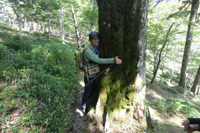 大きなブナの木に抱き着いてみたりします。なんか暖かくほっとします。